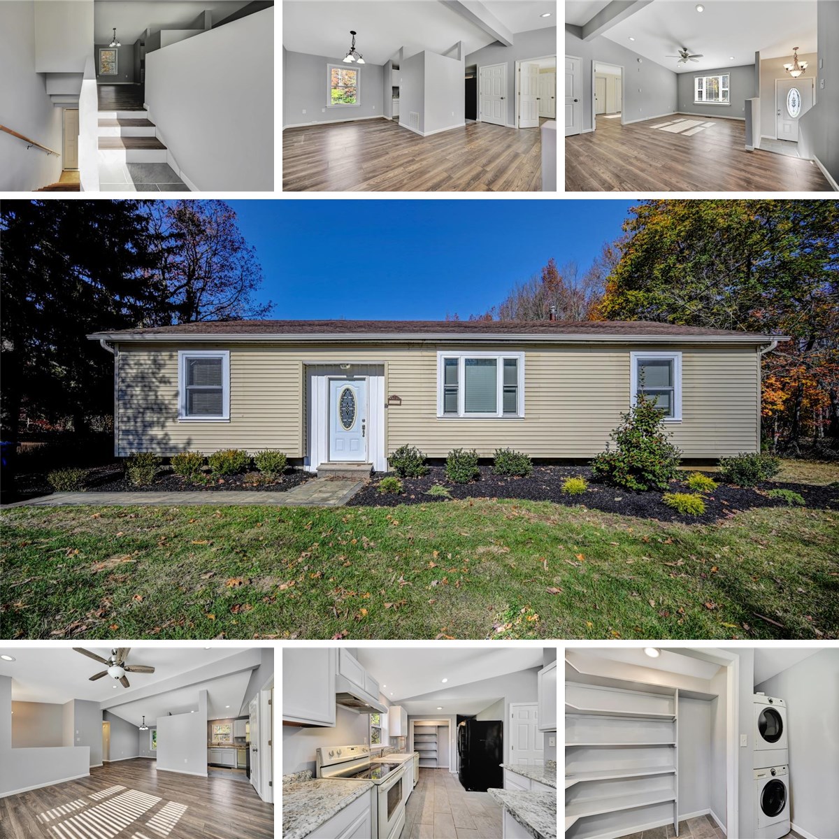 New tile in the entryway, kitchen, and both bathrooms