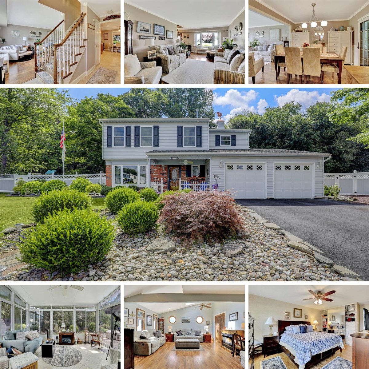 Beautifully Renovated Home on Premium Lot with Upgrades Galore! This beautiful home offers the perfect blend of comfort, functionality, and style. Nestled on a premium lot, it features numerous high-end updates that elevate everyday living. The kitchen and bathrooms were completely renovated in 2017 with sleek, modern finishes, and custom-designed closets along with ceiling fans throughout the home add both luxury and practicality. Newer windows, also installed in 2017, provide energy efficiency and boost the home's curb appeal. An expanded family room, filled with natural light from skylights, offers a warm and inviting space centered around a cozy gas fireplace. Adjacent to this space is a bright 3-season sunroom—perfect for relaxing and enjoying the view year-round. Summer entertaining is effortless with a 16x32 above-ground pool surrounded by a spacious deck, and a 12x18 electric awning provides shaded comfort on the back patio. This home is equipped with a Generac whole-house generator for uninterrupted power, a newer HVAC system and whole house fan for optimal climate control, and an attic fan to improve ventilation. The driveway, replaced just three years ago, adds to the home's pristine exterior, while a fenced-in yard ensures privacy and safety for children or pets. A 10x12 custom-built shed offers generous outdoor storage, and the underground sprinkler system keeps the lawn lush and green. Additional features include an alarm system, automatic garage door openers, and a garbage disposal, making daily life more secure and convenient. Thoughtful upgrades throughout the property create a move-in ready gem that combines quality craftsmanship with modern living. This is truly a must-see home that has it all.